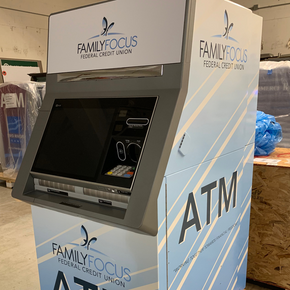 Family Focus Federal Credit Union wanted a simple wrap for an ATM going in the lobby of one of their credit union branches. I used a design consisting of a color gradient paired with stripes to keep the focus on the typography and their logo.